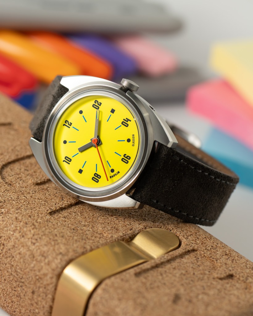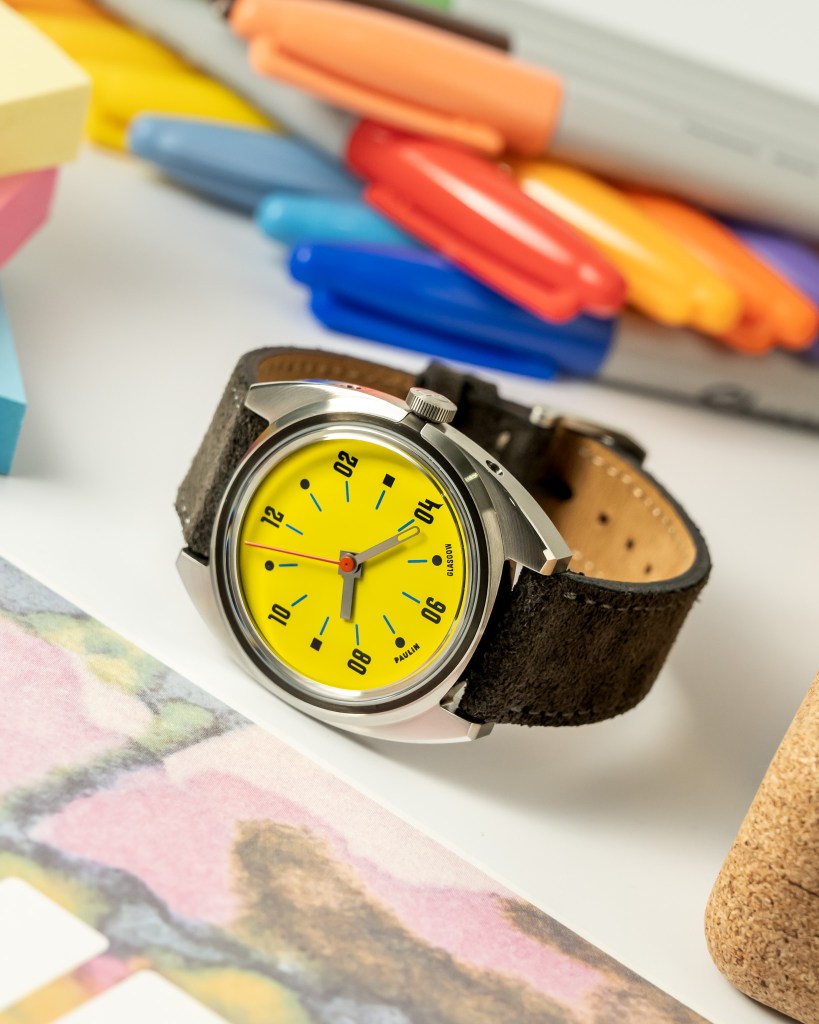 We often hear art movements being sources of inspiration in watch design. Art Deco, Brutalism, Minimalism, Bauhaus, Modernism and Postmodernism. The list goes on. Paulin draws inspirations from art movements, with a unique approach, normally starting with the typography of their numerals. That, in turn, more or less drives the rest of the design. In this encounter, we explore one of their core offerings – the bright and joyful Modul A.