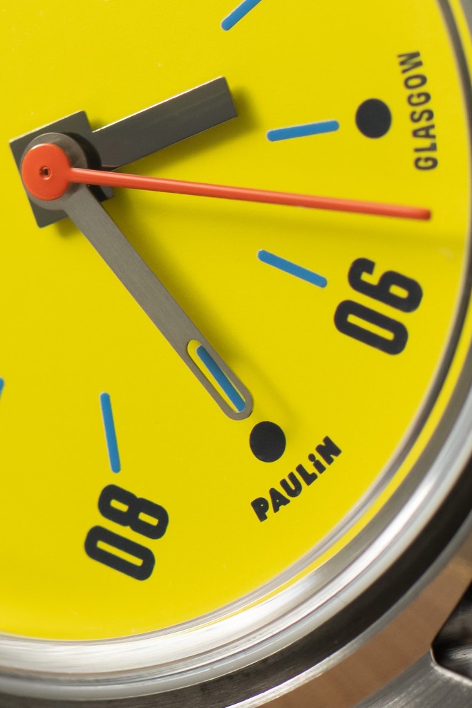 Whilst it does not sport a minute track, the minute hand has a cut-out which perfectly aligns with the blue hour markers. A rather clever feature that sticks its tongue out to the school of thought where accuracy in representation of time is king. Even the, perhaps unorthodox, positioning of the brand name at 7 and its home city of Glasgow at 5 challenges the pre-conceptions of how branding ought to be done. If anything, it provides a welcome break from the typical and the norm, a clear nod to post-modernist outlooks. I, for one, am a fan of these attempts to break barriers. Can you not be a vibrant brand and still be able to do some serious watchmaking? I mean, why always be so serious right?