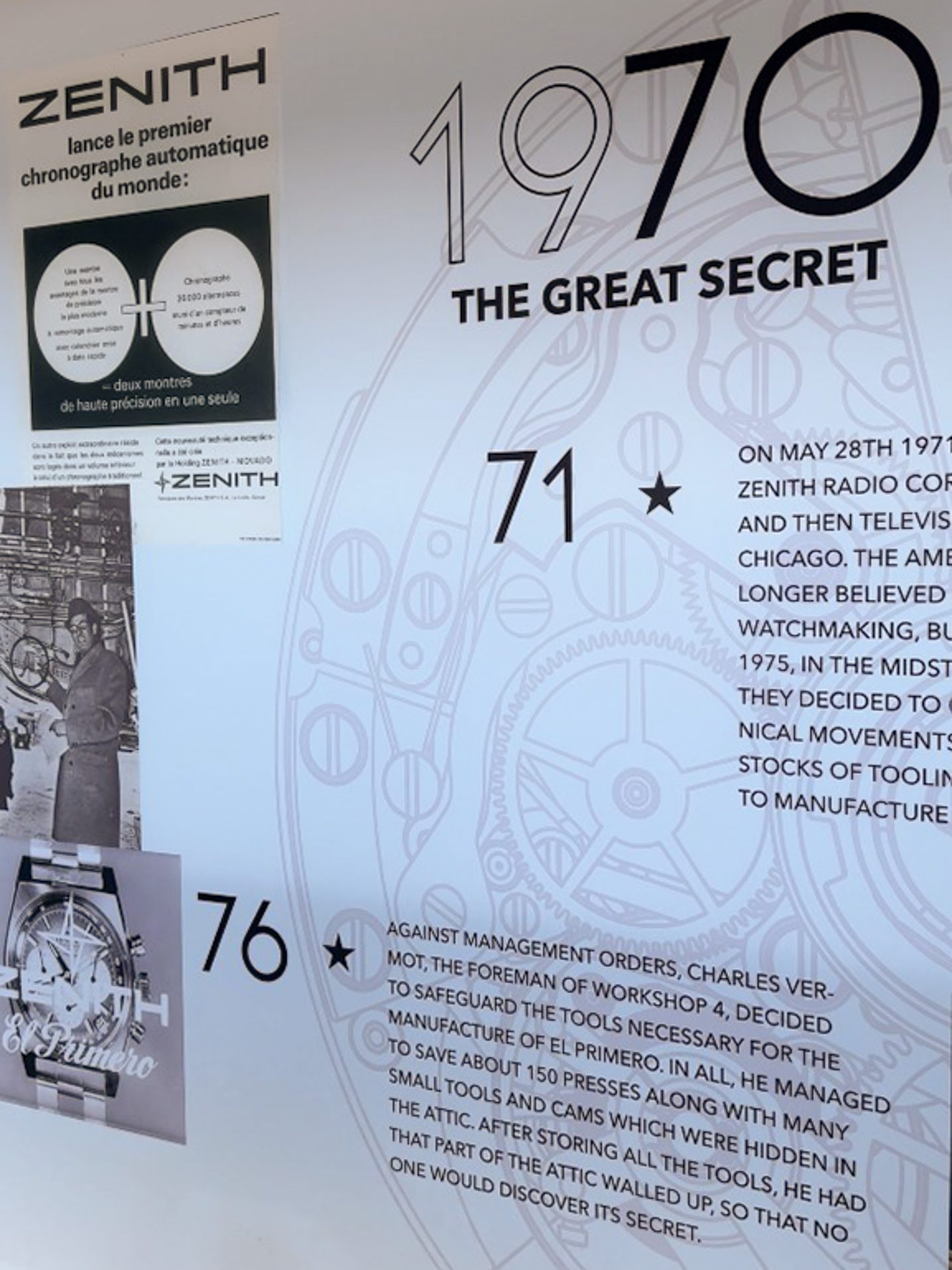 Throughout a period of months, these vital articles were stored and hidden in plain sight in the attic of one of the buildings in the Le Locle complex. Charles Vermot would be helped by a very select few in this endeavour, albeit all the while being reminded that this was a fool’s errand. The head engineer’s will, however, never wavered. As the entrance to the room was bricked up and sealed, the El Primero may have been entombed but was safe from being lost to history.